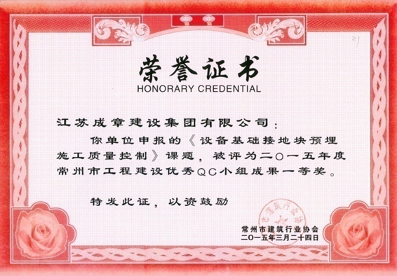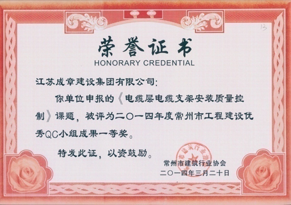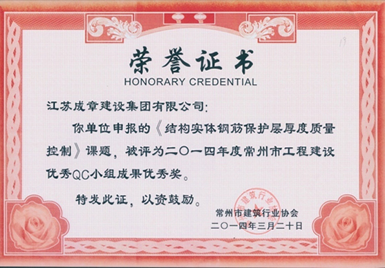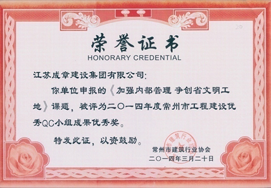 2014年度江蘇省工程建設優質質量管理小組活動成果優秀…