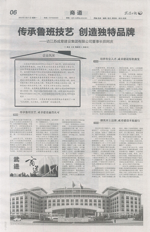 來源:江蘇成章建設集團有限公司 點擊次數: 更新時間:2015/3/16 11:03:01